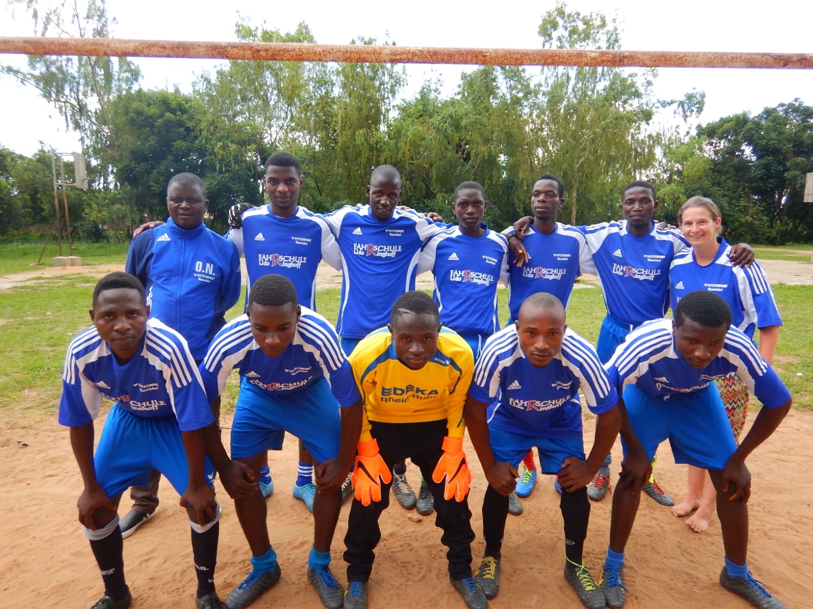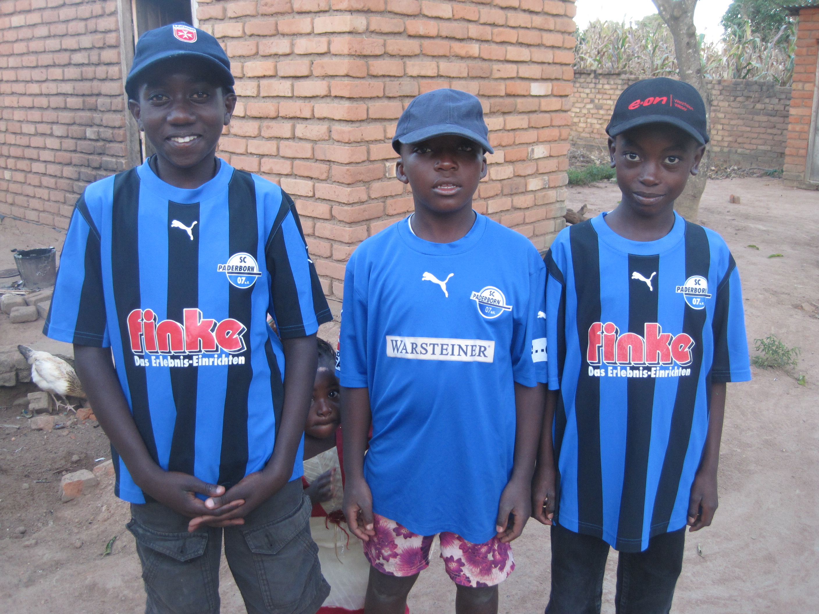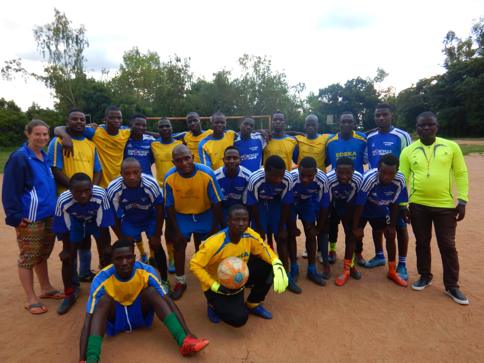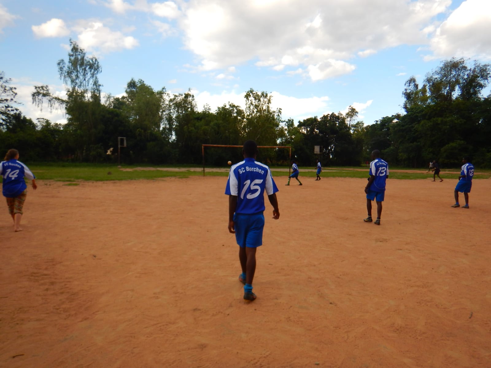 Zudem ist mein Koffer bei jedem Besuch voll mit Fußballausrüstung. Fußballschuhe und Trikots für die verschiedenen Mannschaften der Schulen und des Dorfes sind heiß gefragt. Somit spielen viele der Kinder mit Trikotsätzen vom SC Paderborn 07 oder vom SC Borchen. Letzten November habe ich zwei Trikotsätze für die beiden Dorfmannschaften organisieren können. Einen blauen SCB-Trikotsatz und einen gelben vom SCV Neuenbeken. Um den gelben Trikotsatz hat sich freundlicherweise Alex Wulf mit seiner Schwester Julia gekümmert, welche bei uns in der Damenmannschaft aktiv ist. Vielen Dank dafür!