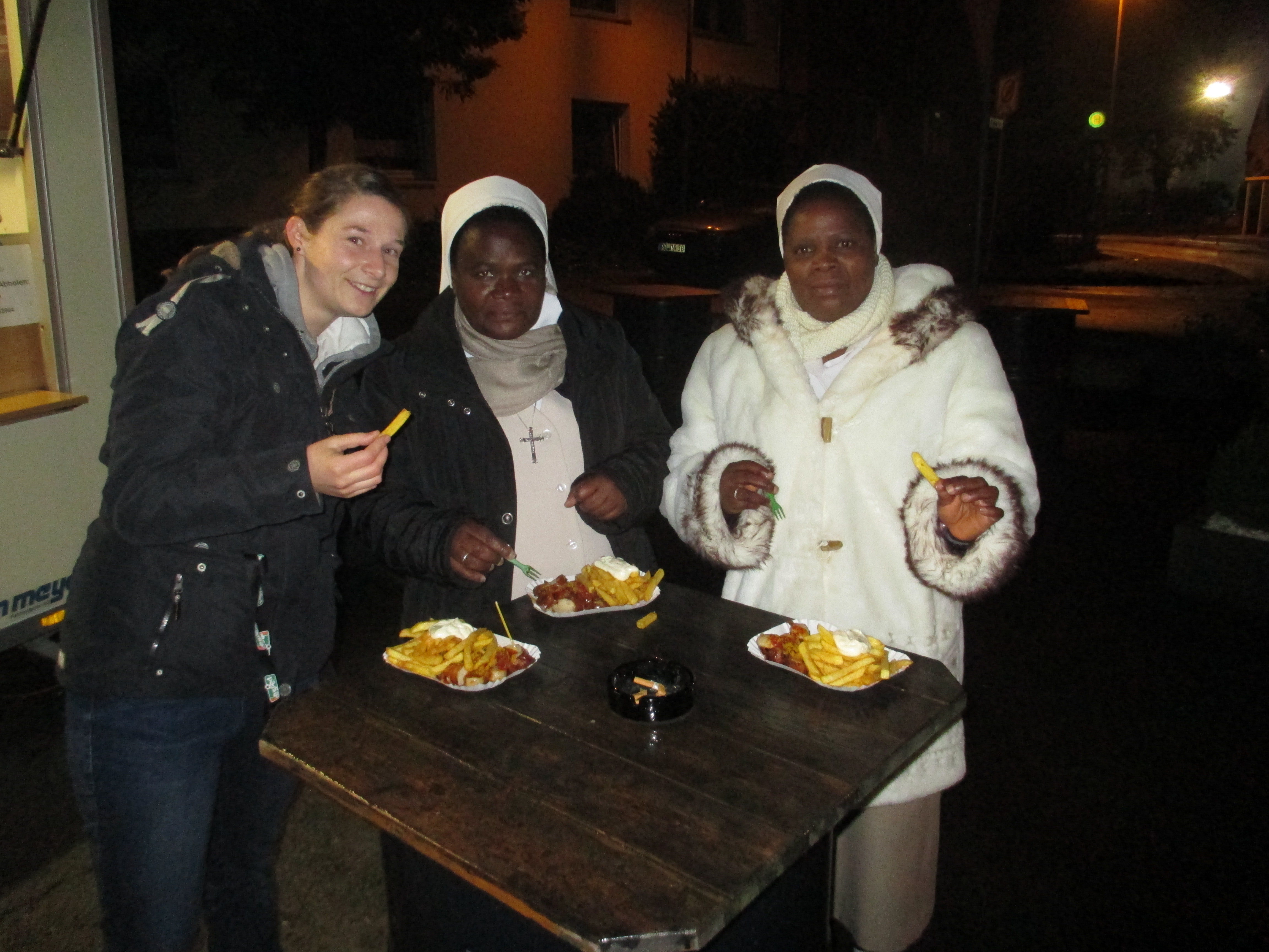 Das würde dann sogar die Schwestern der Kongregation zum Sportplatz locken. Auf ihrem Deutschlandbesuch haben sie bei Anke`s Hessenberggrill eine Mantaplatte probiert. Seither nennen sie sich selber: „Manta-Sisters“. Weil es sooo lecker war. Somit wäre für heiligen Beistand und einen vollen Magen gesorgt.