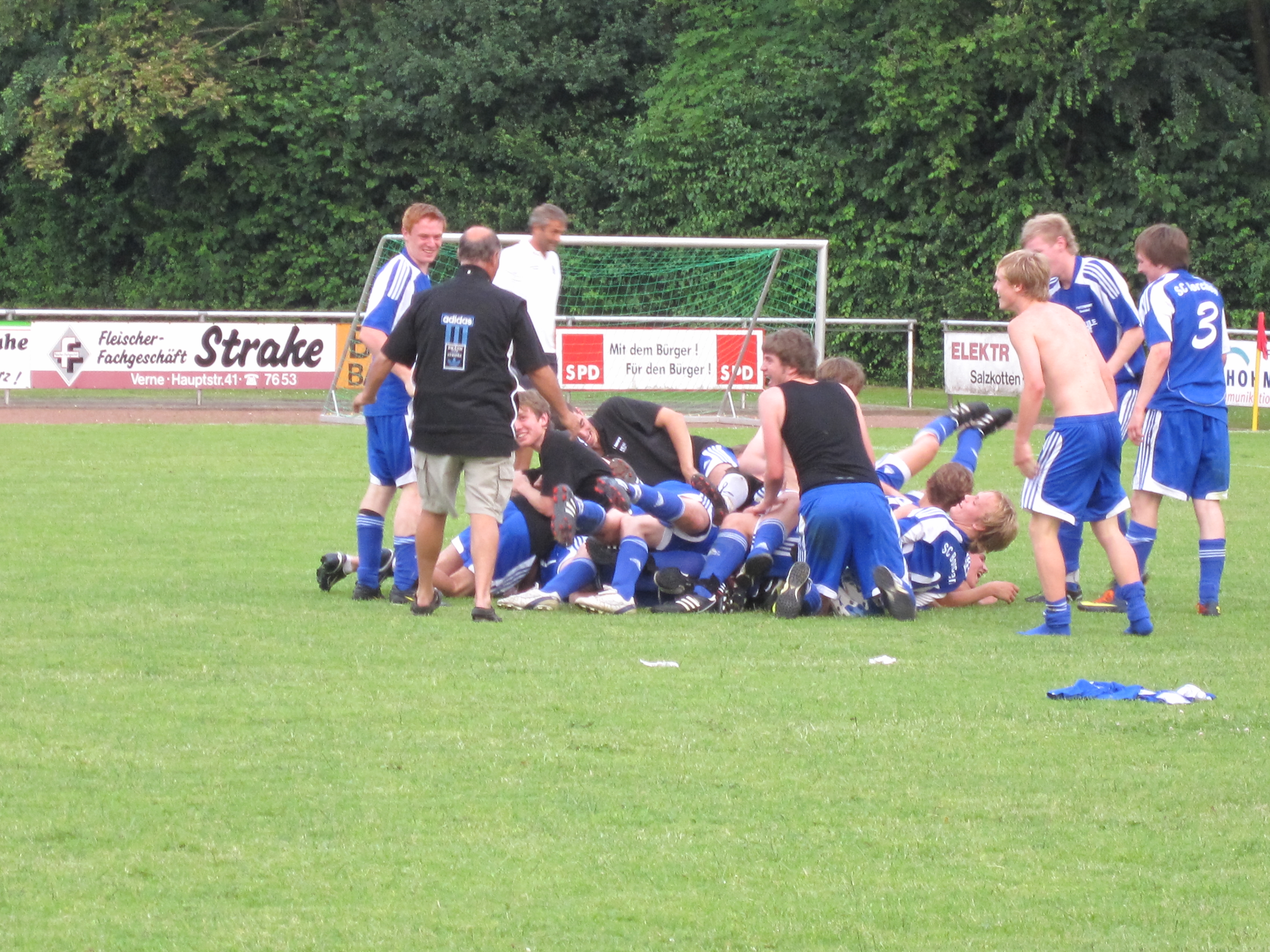 Denn bereits seine erste Saison als SCB-Trainer sollte das wohl größte sportliche Highlight seiner Zeit am Hessenberg darstellen. Doch der Reihe nach: Einige Spieler, die Jürgen von seinem Engagement in Mastbruch nach Borchen gefolgt waren, mögen die restlichen Mitspieler schnell von der doch recht harten Vorbereitungsphase gewarnt haben. Schnell war allen Beteiligten klar, dass Jürgen allzeit sehr großen Wert auf die körperliche Fitness seiner Schützlinge legt. Dementsprechend hart geht es in den Wochen der Vorbereitung auch zu Werke. Was muss das muss. Immerhin können alle Spieler mit Fug und Recht behaupten, selten so fit in eine Spielzeit zu starten. Dennoch soll das ganze kein negatives Bild auf die Arbeit von Jürgen werfen. Zwar bringt die Vorbereitung am Wilhelmsberg oder den Fischteichen auch den fittesten Spieler an seine Grenzen, der Spaß am Spiel geht dabei aber zu keiner Zeit verloren.