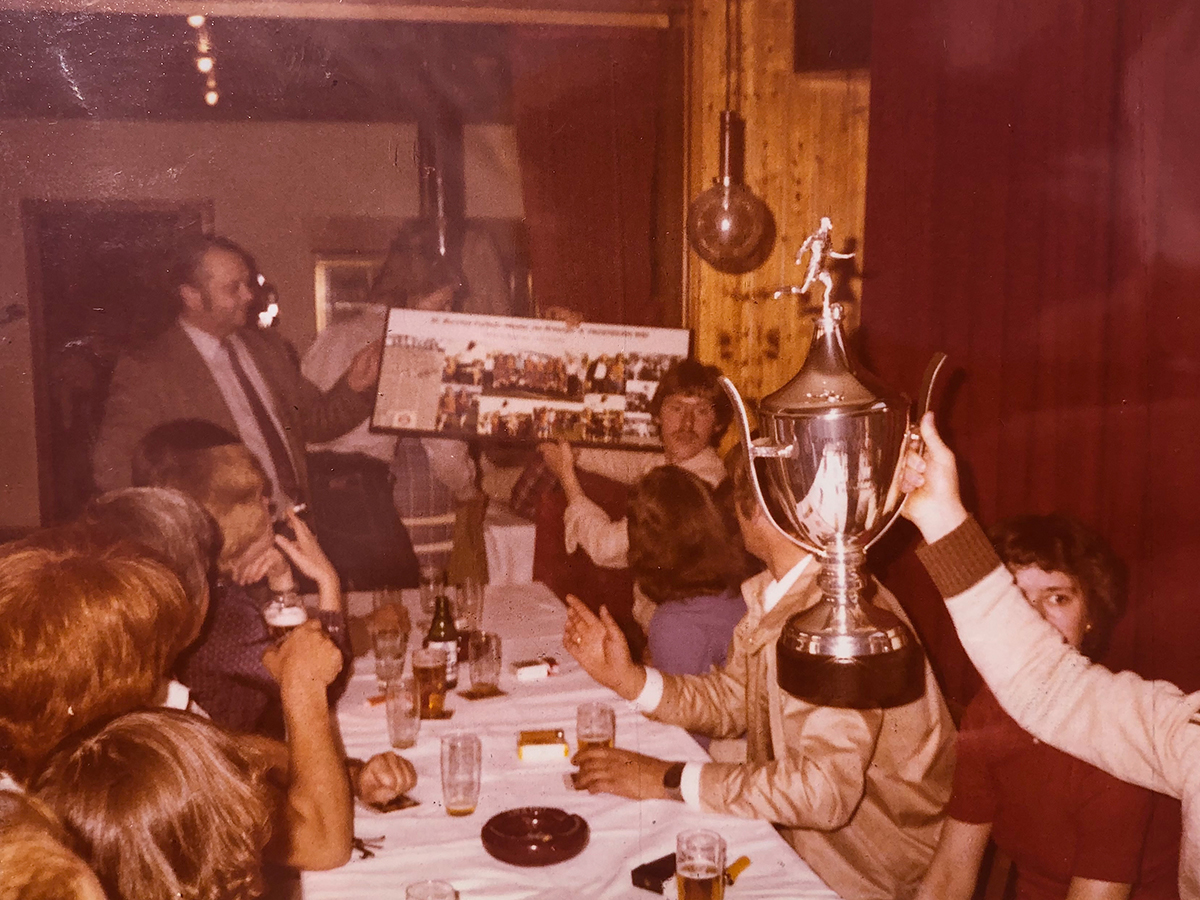 Dieses Entscheidungsspiel konnten wir eigentlich nicht verlieren, denn mit Beginn der Rückrunde wurde in den Vereinslokalen bei jedem Sieg eine vorgezogene Meisterfeier geprobt. Diese Feiern waren so intensiv, dass mehrere von uns am nächsten Morgen Probleme mit dem Aufstehen und dem Gang zur Arbeit hatten. Es war immer eine große Runde: die komplette Mannschaft, meistens auch unsere Frauen/Freundinnen, häufig der Trainer, unsere Betreuer ‚Bubi‘ Rubarth und Altmiks ‚Fitti‘ und der Vorstand sowie immer einige Fans, die uns nach dem Spiel ins Vereinslokal begleiteten. Es wurde aber nicht nur getrunken, sondern es wurden auch die Vereinslieder wie ‚Blau und Weiß‘, ‚Unser Torwart auf der Lauer‘ etc. nicht schön, aber meistens laut von allen ‚geschmettert‘. Einige Male sogar von Dernbach`s Willi auf dem Schifferklavier begleitet. Im Ohr geblieben ist mir dabei auch noch der Ausspruch unseres Torwarts Lago (Norbert Franke) "Das Meisterjahr ist angebrochen", den er jeden Sonntag zum Besten gab.